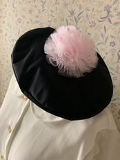 綿素材のやわらかな生地にお花をかたどったチュールのぽんぽんがポイントのベレー帽です。