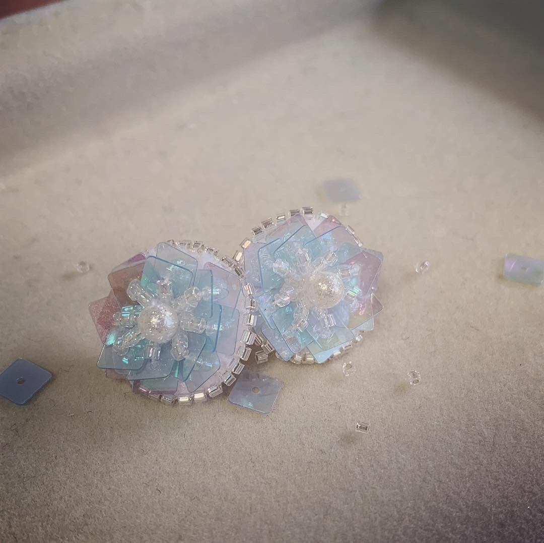 ヴィンテージスパングルを使用した、煌びやかなお花のイヤリングです。